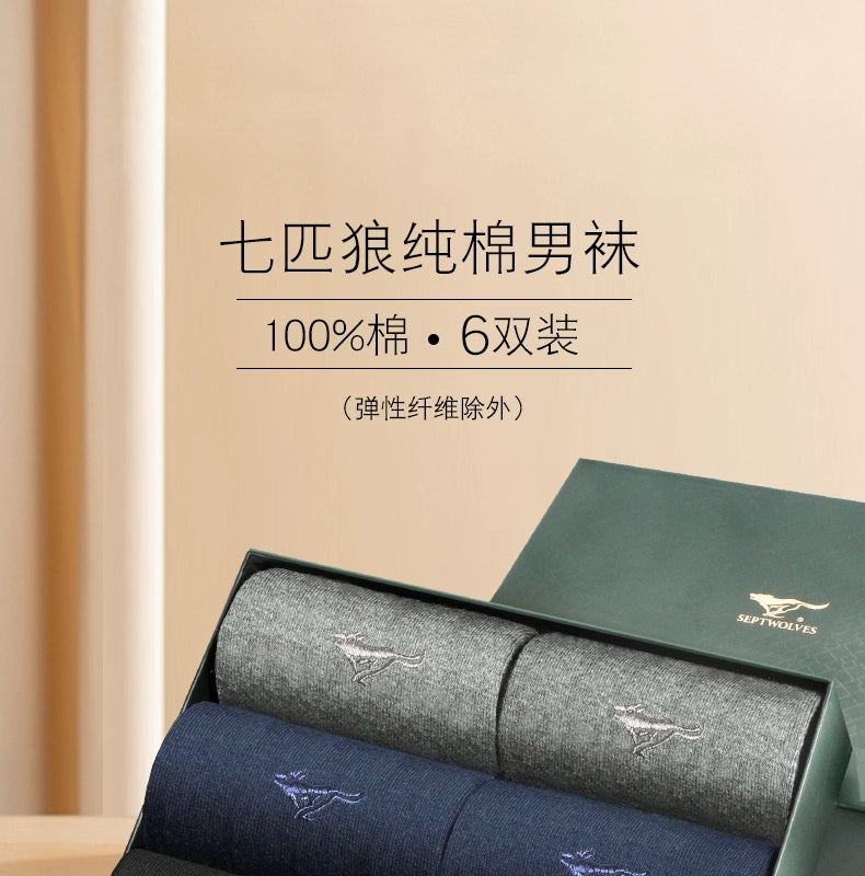 Seven Wolves Autumn Socks Men's Cotton Mid-Height Anti-odor, Sweat-Absorbing, Antibacterial, Breathable, Thin Cotton Business Socks for Men